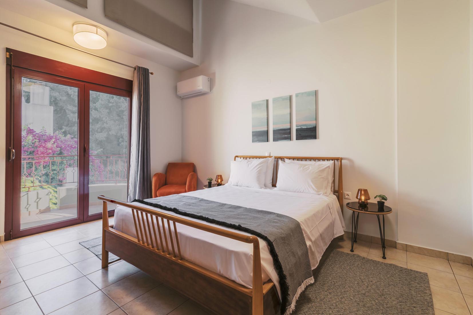 Outdoors, the villa is equally impressive as indoors. It offers large a a magnificent pool area, with a beautiful green surrounding, that’s equipped with parasols and sun beds, creating the perfect setting for a relaxed time under the golden rays of the Greek sun. The villa also has beautiful balconies on first floor with views of the surrounding area. The villa offers a pergola with an incredible BBQ installation with a sitting area where guests can enjoy a truly unique outdoor gathering and a tasty meal.